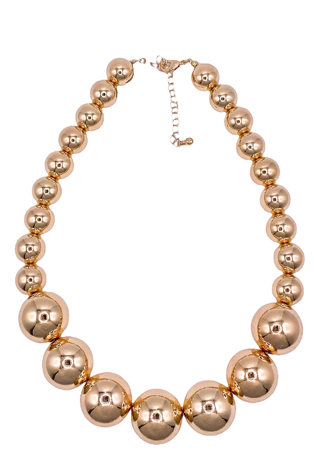 Discover effortless elegance with our Having A Ball Necklace. Featuring adjustable length for the perfect fit, delicate gold beads, and a variety of sizes for a unique look. Elevate any outfit with this versatile and stylish accessory. Perfect for any occasion.