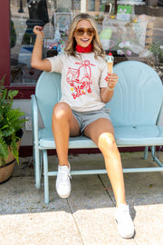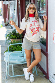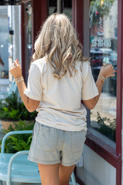 Casual and comfortable, this soft cream tee features a rounded neckline and short sleeves with a flattering waist-length cut. The playful "Ciao" graphic on the front adds a touch of Italian-inspired charm to this versatile everyday essential.
