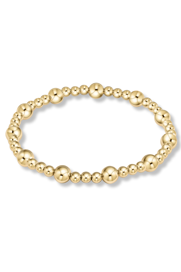 E-Newton You will fall in love with this classic sincerity pattern 6mm bead bracelet! This bracelet is a classic gold beaded bracelet with alternating bead sizes. The larger bead size is a 6mm and the smaller bead size is a 4mm.