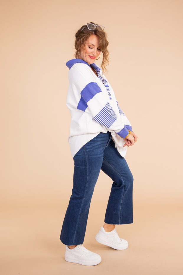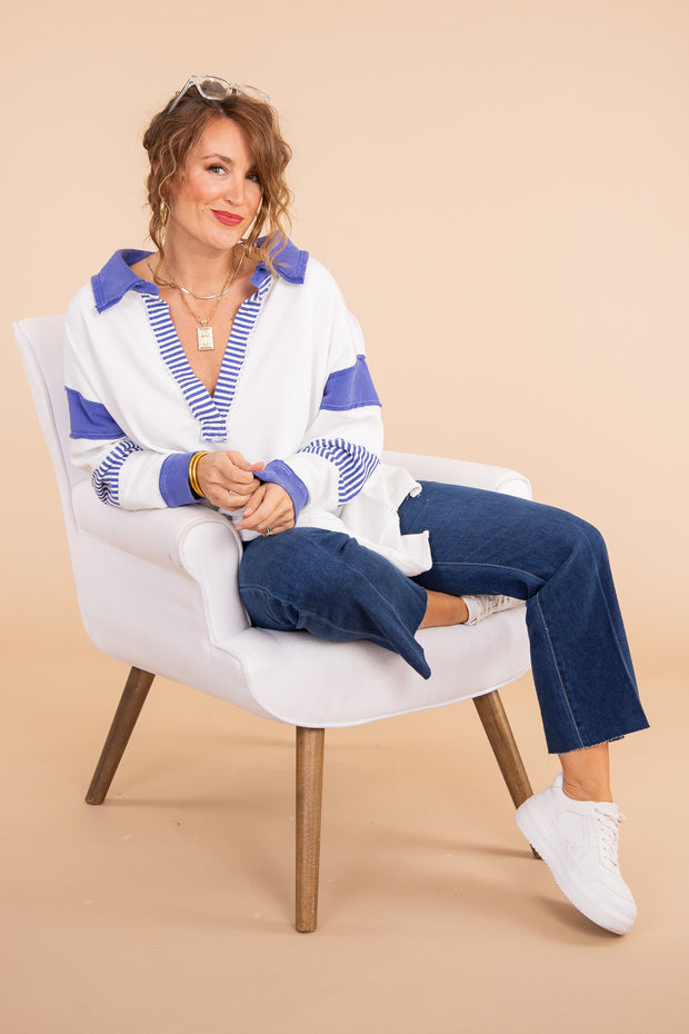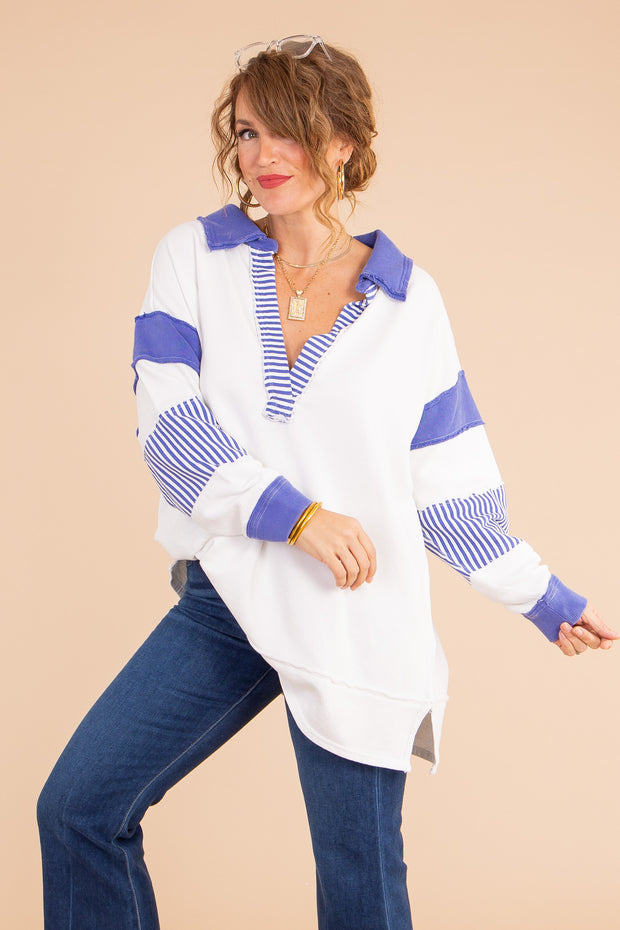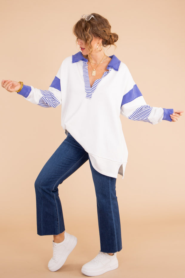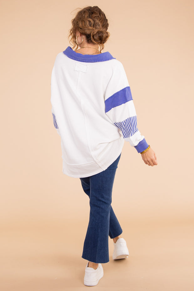 This Clean Prep Polo from Free People is crafted with soft, lightweight fabric to ensure all-day comfort. It features a v-neckline, long sleeves, a top collar, side slits, and an oversized fit, making it the perfect addition to any wardrobe.