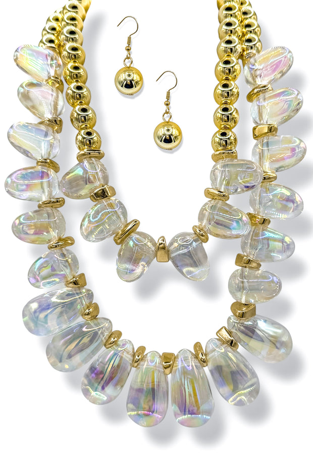 This chunky beaded double-layered necklace adds texture and dimension to any outfit, perfect for elevating your everyday look or complementing special occasions.