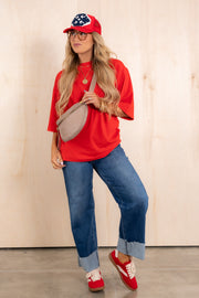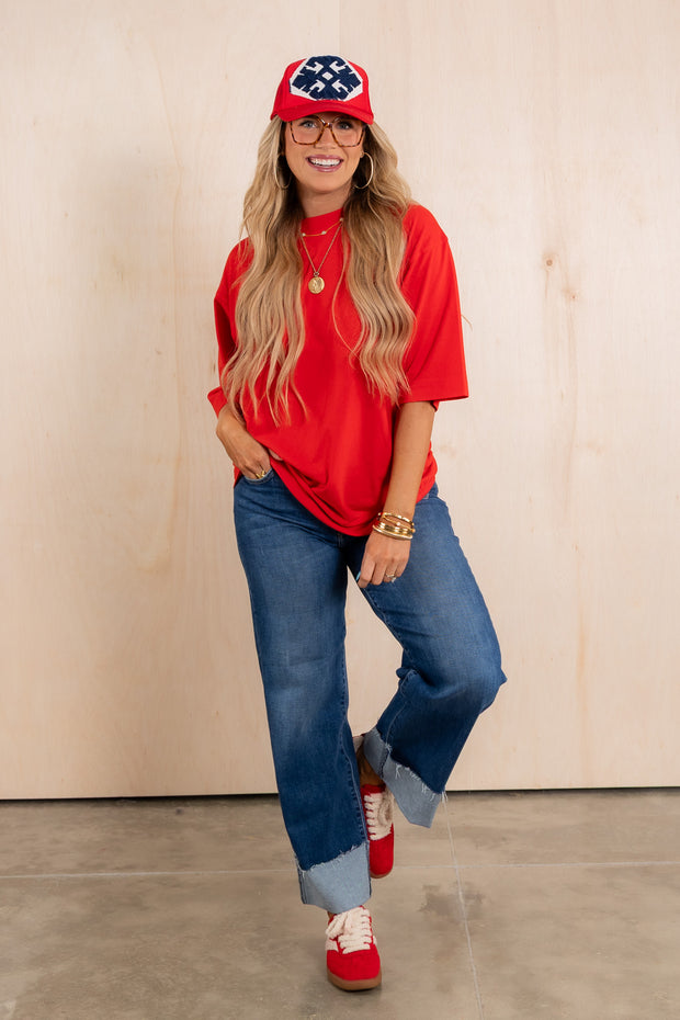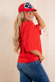This Top offers a rounded neckline and short sleeves for a classic, comfortable fit. Its boxy silhouette provides a relaxed and stylish shape, making it an easy choice for casual, everyday wear.