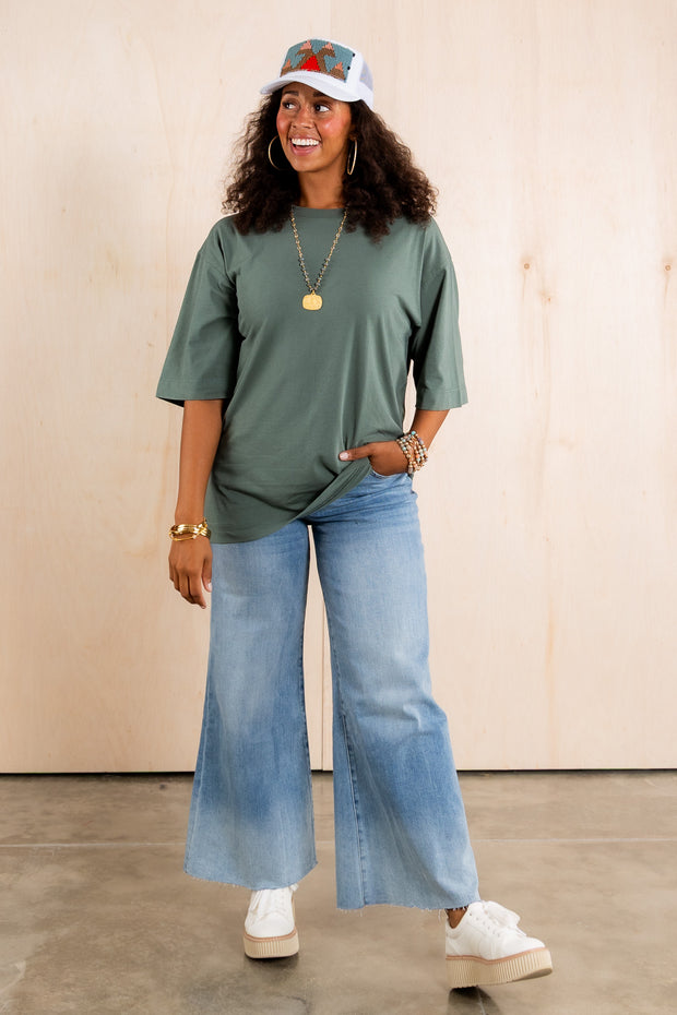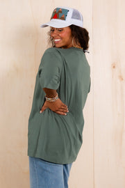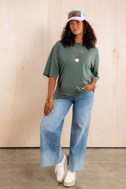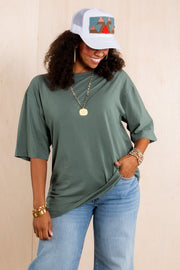 This Top offers a rounded neckline and short sleeves for a classic, comfortable fit. Its boxy silhouette provides a relaxed and stylish shape, making it an easy choice for casual, everyday wear.