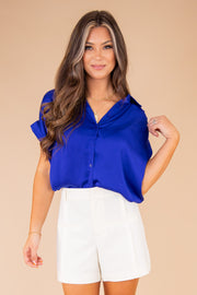 Our No Worries Top is the perfect blouse for busy days. Its satin-like material looks and feels luxurious, while its top collar, button down front, and short sleeves provide a classic, easy-to-style look. Ideal for days when you're on the go, this top will keep you feeling polished and put-together. We love this top styled with denim, statement jewelry, and sandals perfect for everyday.