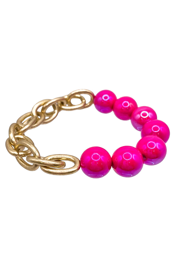 Transform any outfit with our Coming Your Way Bracelet. Adorned with beautiful pink beads and a delicate, gold chain link, this bracelet adds a touch of elegance to any ensemble. Elevate your style and make a statement with this must-have accessory.