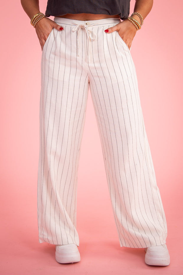 We're bringing pinstripes back this season with the casual chic Cortez Stripe Pant. Made of our breezy rayon linen fabric, this pant is perfect for all your warm weather adventures.
