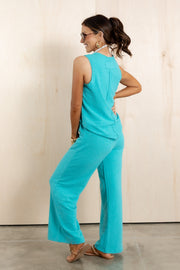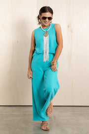 Expertly crafted with a wide leg and elastic pull-on waistband, this set offers effortless style and comfort. Complete with side pockets, sleeveless design, and a round neckline, this set is perfect for any occasion.