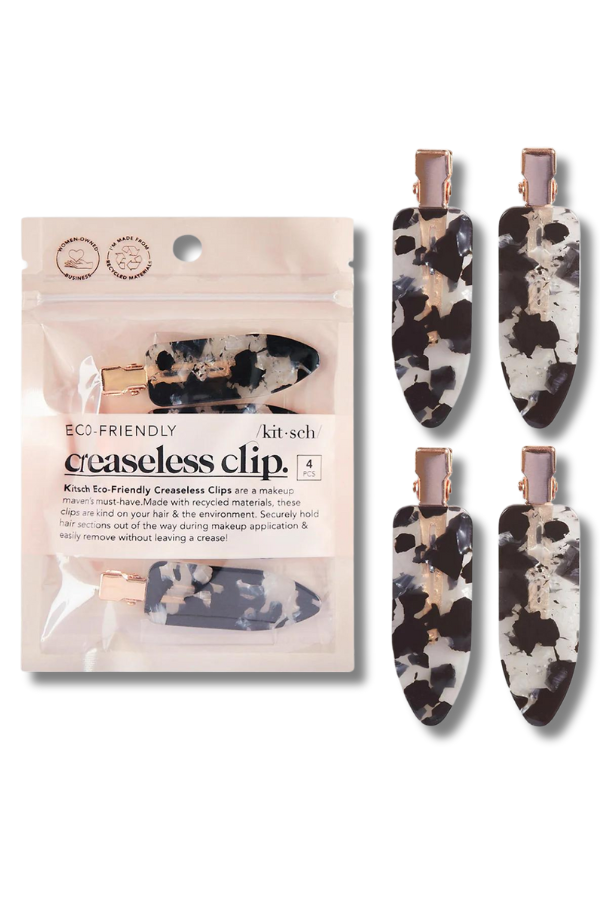 Kitsch Eco-Friendly Creaseless Clips are a make up maven's must-have. Made with recycled materials, these clips are kind on your hair & the environment. Securely hold hair sections out of the way during make up application. Easily remove without leaving a crease!