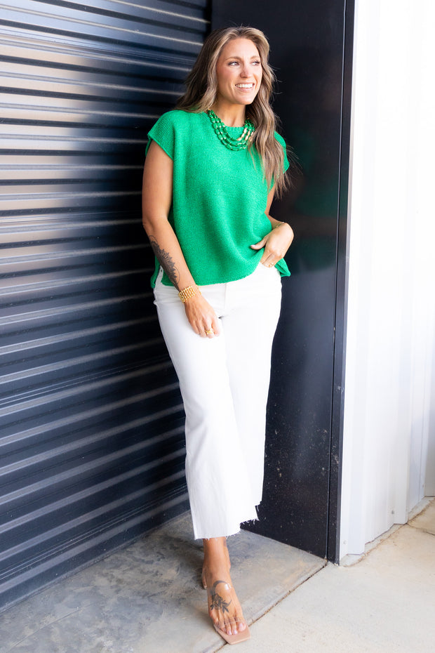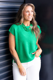 Lucky You're Here K. Green Crew Neck Sleeveless Sweater