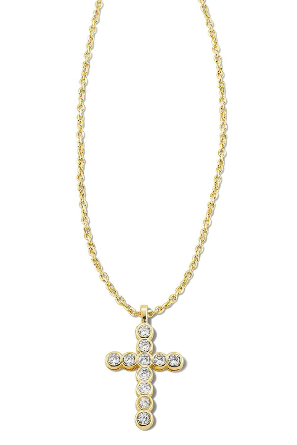 A delicate symbol with subtle shine, the Cross Gold Pendant Necklace in White Crystal is a meaningful reminder of what matters to you most.