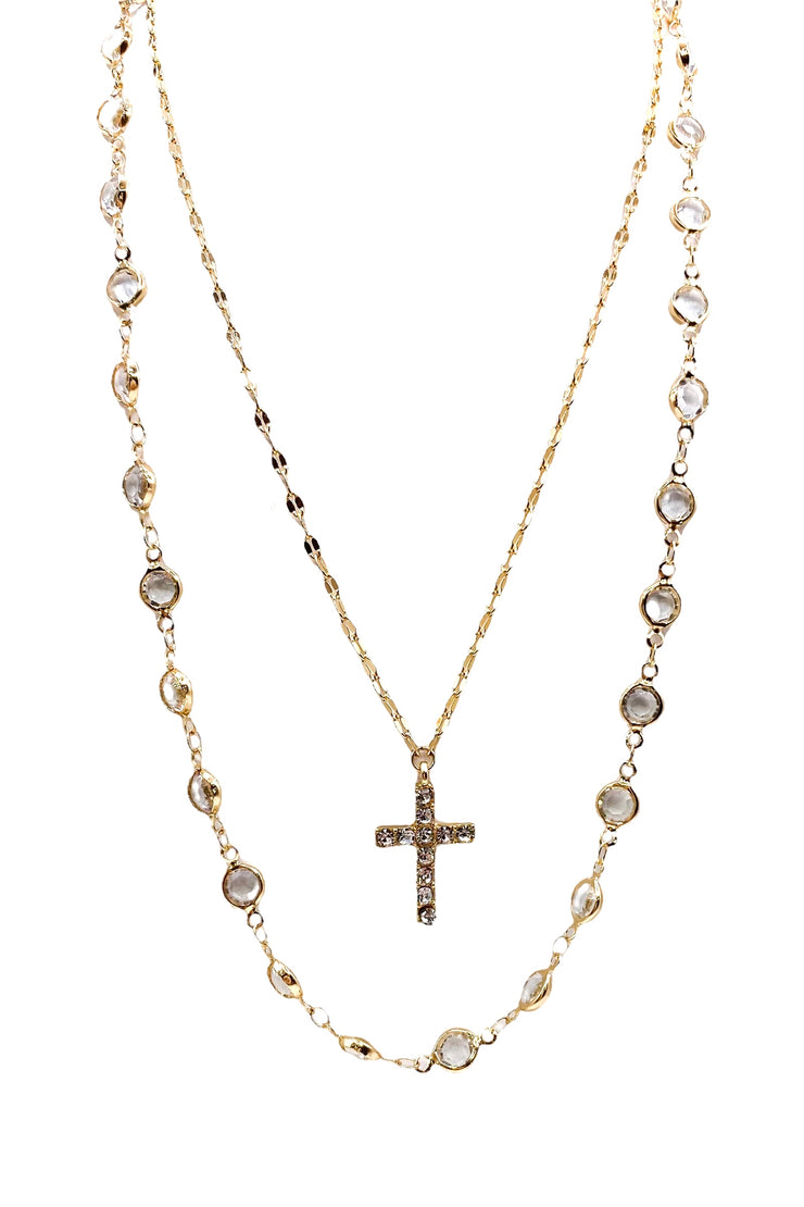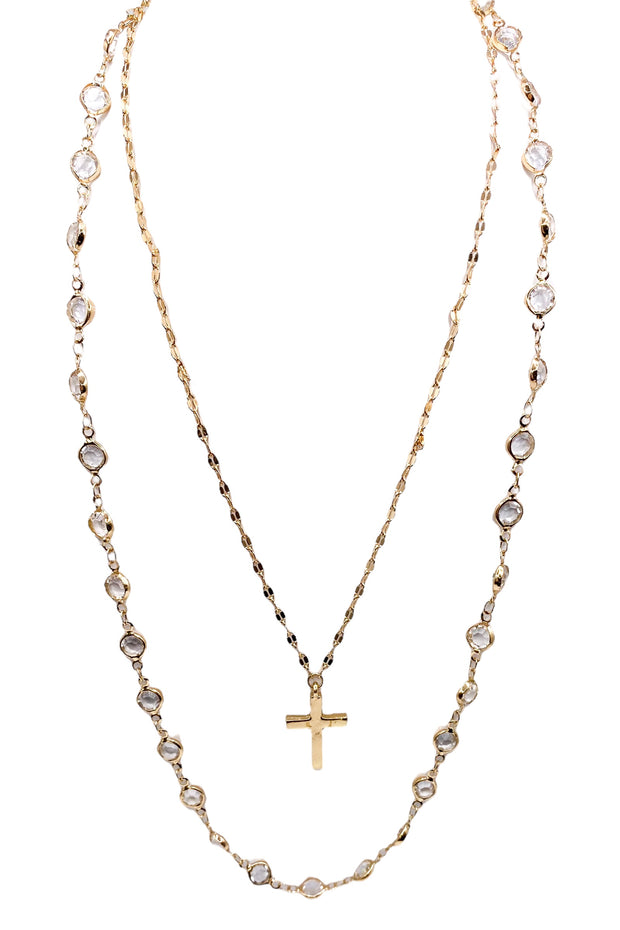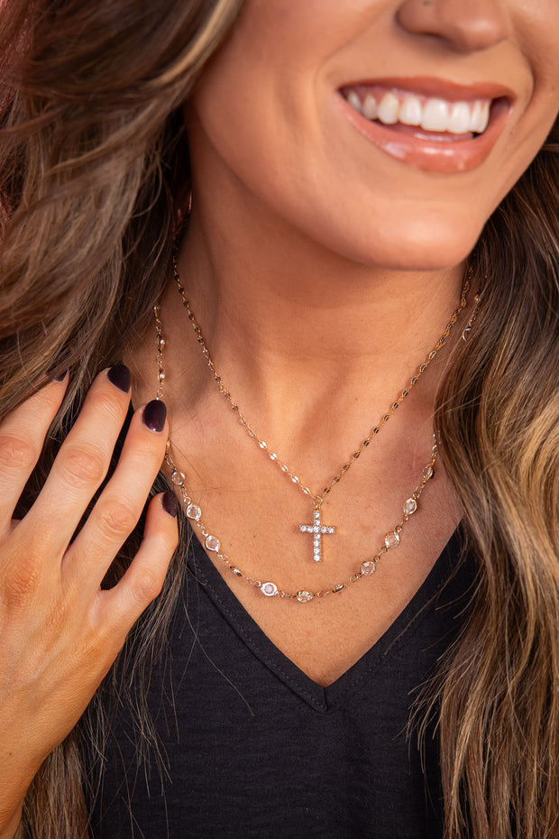 This stunning Crystal Clear Cross Necklace Set is the perfect statement accessory. Crafted with linked crystals, and a classic gold chain necklace with a cross pendant, it's perfect for special occasions and events.