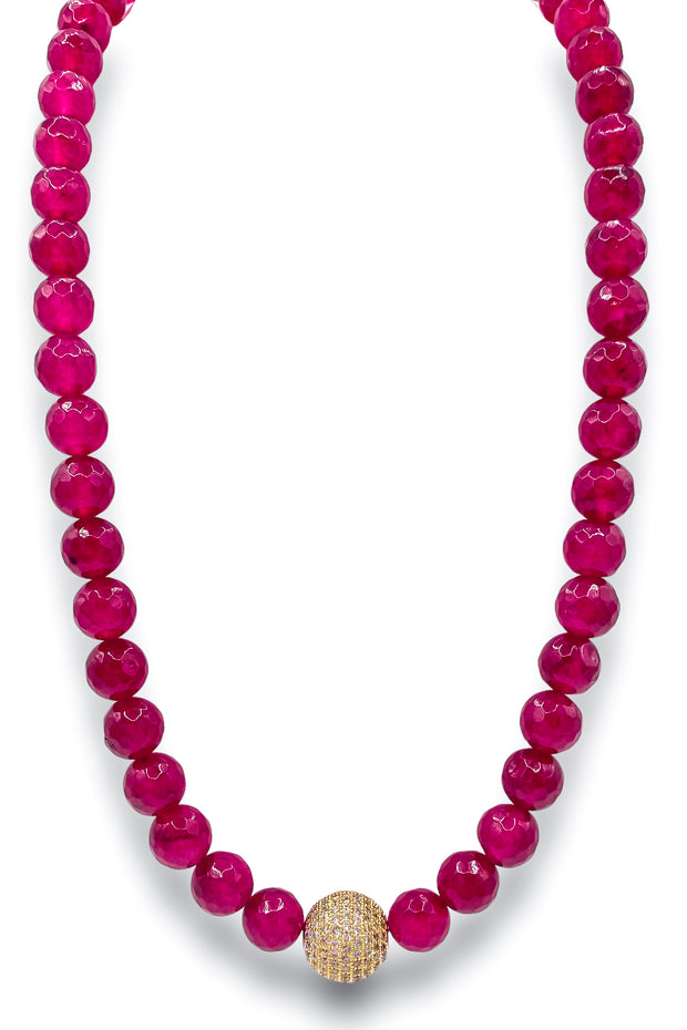 This In Full Swing Necklace features a 10mm gemstone beaded necklace, adding a pop of color to your wardrobe. A CZ bead detail adds a touch of elegance and versatility. Elevate your style with this gemstone necklace.