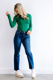 The Go My Own Way Dark Green Long Sleeve Mock Neck Top is made from butter-soft fabric that feels gentle on the skin. Its breathable design keeps you comfortable all day, while the mock neck adds a stylish touch to your look.