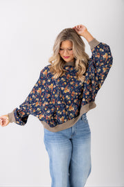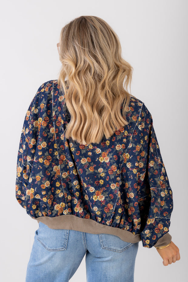 Never Looking Back Denim Floral Long Sleeve Pullover