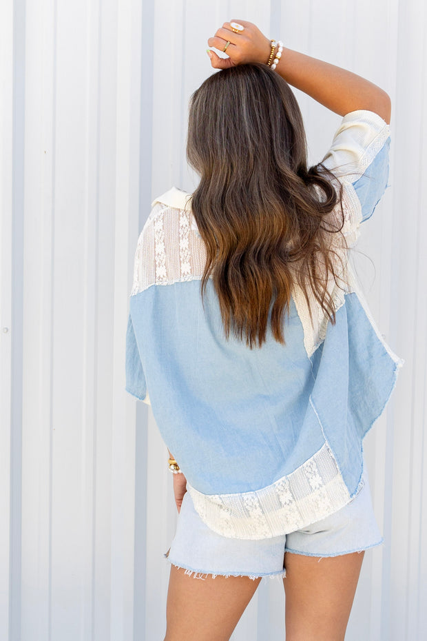 The Back For You Top features a classic button down front and short sleeves, perfect for any occasion. The top collar adds a touch of elegance, while the crochet detailing adds a unique and stylish element. Stay chic and comfortable with this must-have piece.