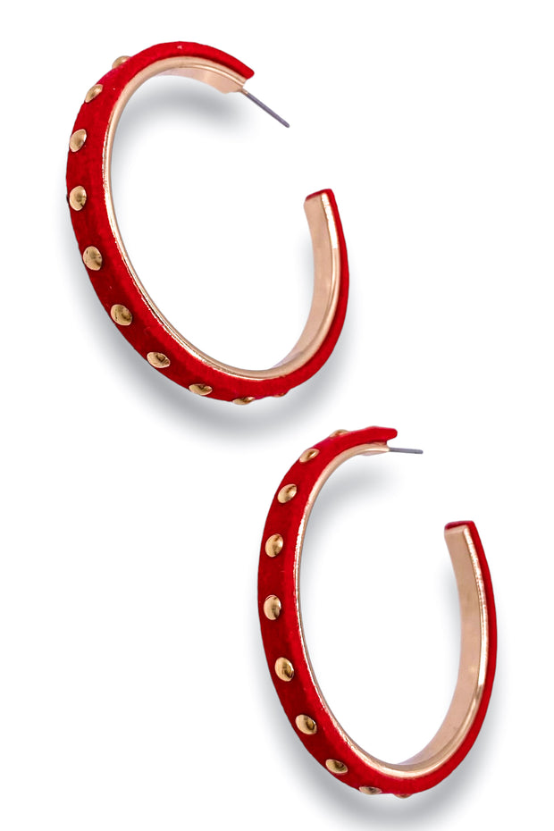 Get ready to elevate your style with our Staying Here Earring in red. These hoop earrings feature delicate gold dot detailing that adds a touch of elegance to any outfit. These earrings are a must-have for any fashion-forward individual.
