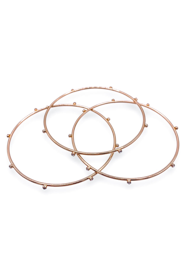 Introducing the Speaking Truth Bracelet Set in Gold - a trio of elegant bangles adorned with sparkling crystals. This stylish set adds a touch of glamour to any outfit, perfect for both formal events and everyday wear. Each bracelet is a testament to timeless beauty.