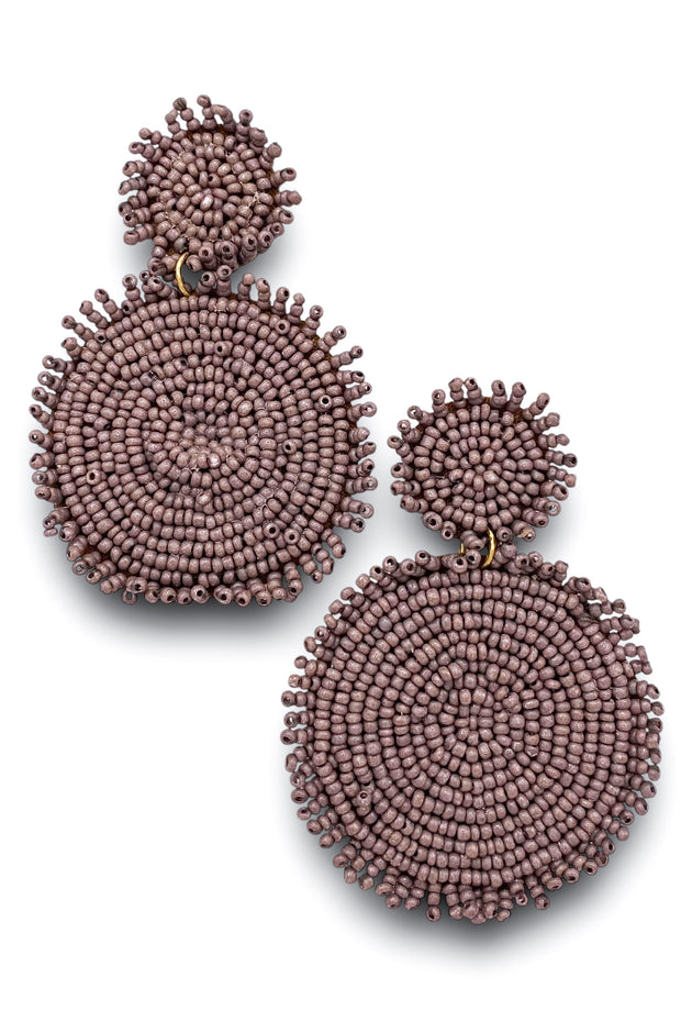 These Mesmerized By You Earrings are... well.. mesmerizing! The intricate pattering of the beads are sure to grab your attention. Both the stud and the base are circular with the beads laying in a circular pattern, and each circle has extensions of short beaded fringes.