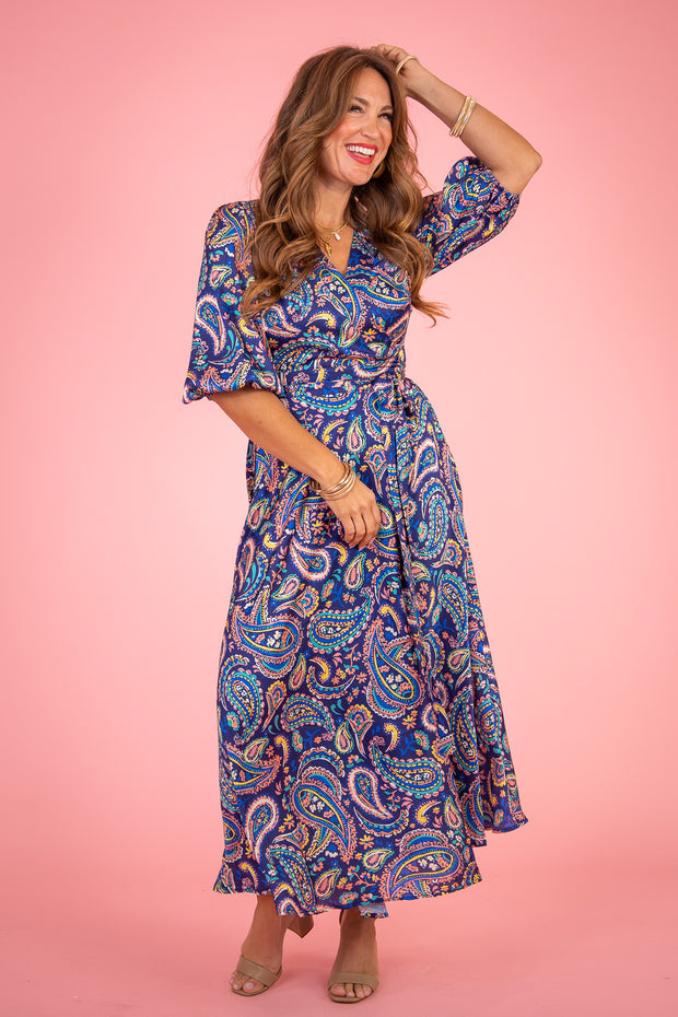Stay stylish and comfortable with our Wanting The Best Wrap Dress. This elegant dress features a beautiful paisley print on a silky material, accentuated by a v-neckline and a flattering wrap style silhouette. Enjoy its flowing maxi length and elevate your wardrobe with this versatile piece.