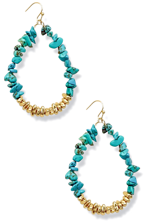 These elegant earrings feature natural stone and metal beads, providing a unique and sophisticated look. These dangle earrings to elevate your confidence and fashion sense.