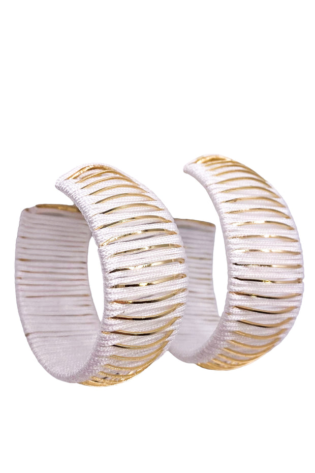 These Sweet Love Earrings are the perfect addition to any outfit. The hoop style earring is adorned with intricate gold detailing, adding a touch of elegance. Made from a knitted material, these earrings are lightweight and comfortable, making them perfect for all day wear. Elevate your style with the Sweet Love Earrings.