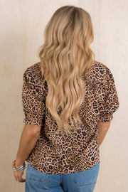 Introducing the Leopard Short Sleeve Top, designed with a cropped silhouette and stunning leopard print. Featuring short sleeves and a button down front, this top exudes sophistication and elegance.