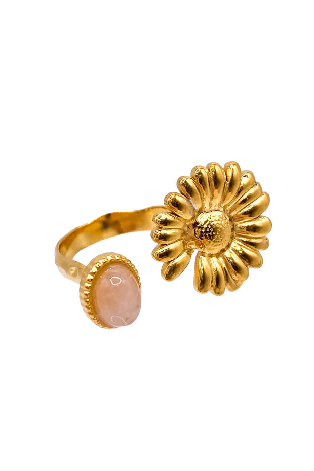 Make a subtle statement with the Elin Ring by Kristalize. This elegant gold ring features delicate daisy detailing, adorned with a stunning gemstone for a touch of glamour. Expert craftsmanship and unique design make this piece a must-have for any jewelry collection.