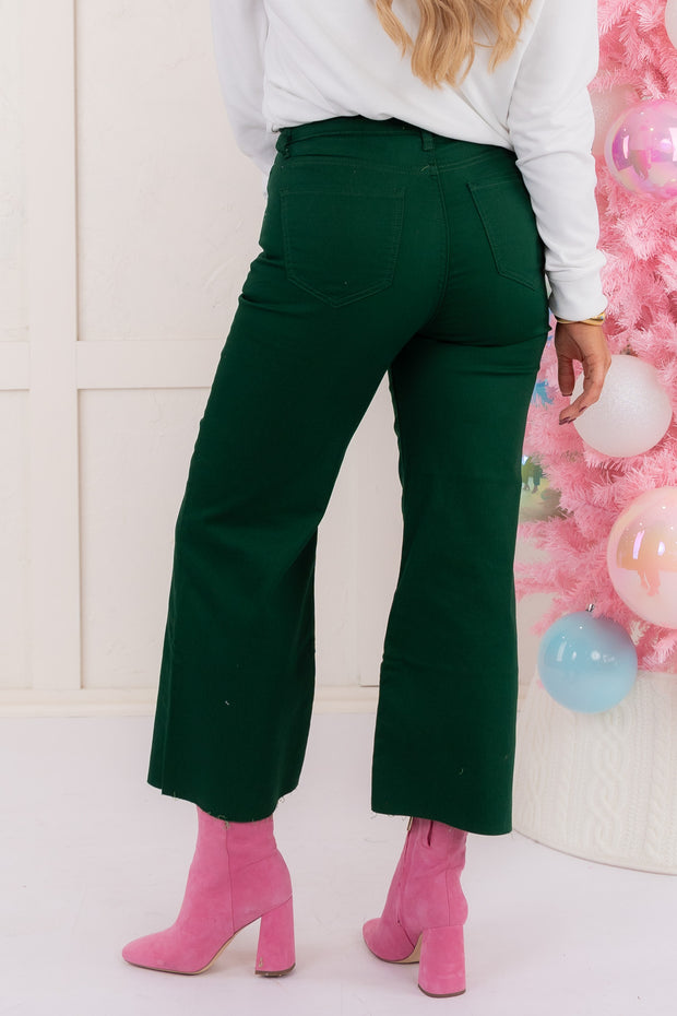 The Emory High Rise Flare Cropped Pant is the perfect choice for a sleek, modern look. Crafted from high-end stretch material for a comfortable yet sophisticated fit, it features functional pockets, a front zip button closure, and a raw hem line for a stylish cropped silhouette.