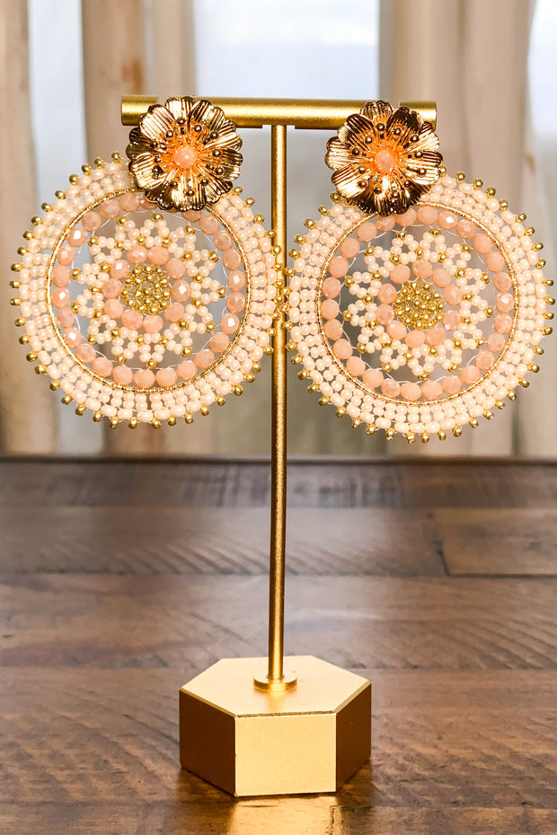 Expertly crafted with a post gold flower stud, these Eternal Flower Earrings from Treasure Jewels feature delicate hand beaded details and make a bold statement. Embrace timeless elegance with a touch of playful sophistication.