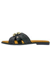 The perfect blend of style and comfort. These flat sandals feature raffia straps and buckle detailing, offering a classic and sophisticated look. These sandals are durable and stylish, making them a must-have for any fashion-forward individual.