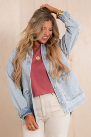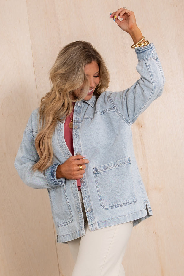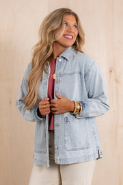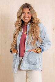This Jacket features a top collar, long sleeves, and a button-down front for easy wear. It includes front pockets and a boxy silhouette, offering a relaxed and comfortable fit perfect for layering.