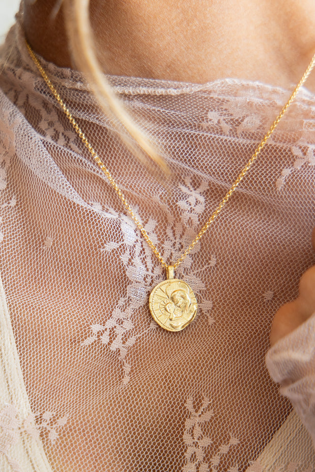 Our Faith Necklace is an absolute showstopper, This is a gold chain with a gold pendant and is perfect for layering or worn by itself.