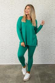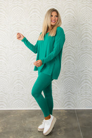 This Falling Into Place Loungewear Set, features a flattering v-neckline and cozy long sleeves, perfect for relaxing at home. The legging bottom adds a practical and stylish touch to this comfortable set. Perfect for those who value both style and comfort.