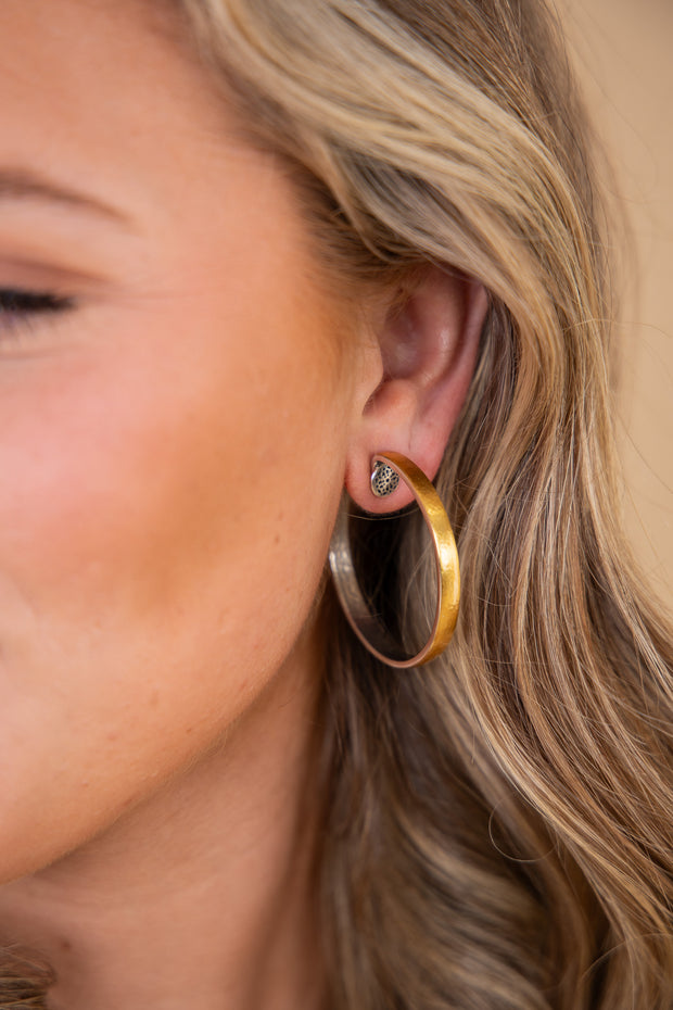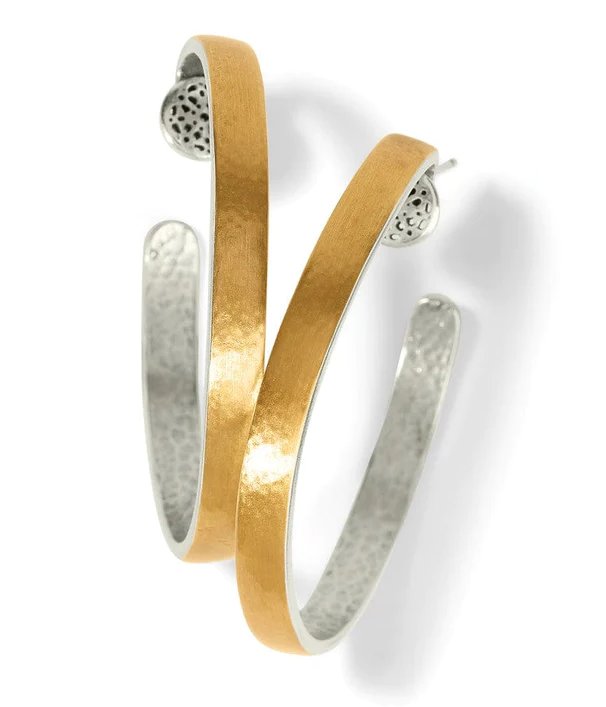 Ferrara Entrata Medium Hoop Earrings. These hoop earrings with softly hammered details and golden accents is modern art-to-wear – breathtaking from every perspective. These will become your go to!