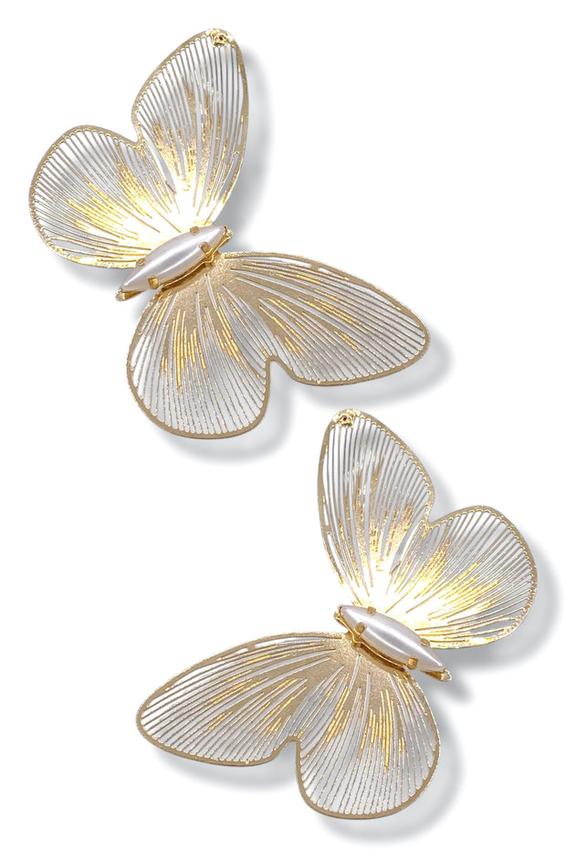Crafted with intricate filigree details, these earrings are a stunning addition to any outfit. Delicately designed to resemble a butterfly, they evoke a sense of elegance and grace.