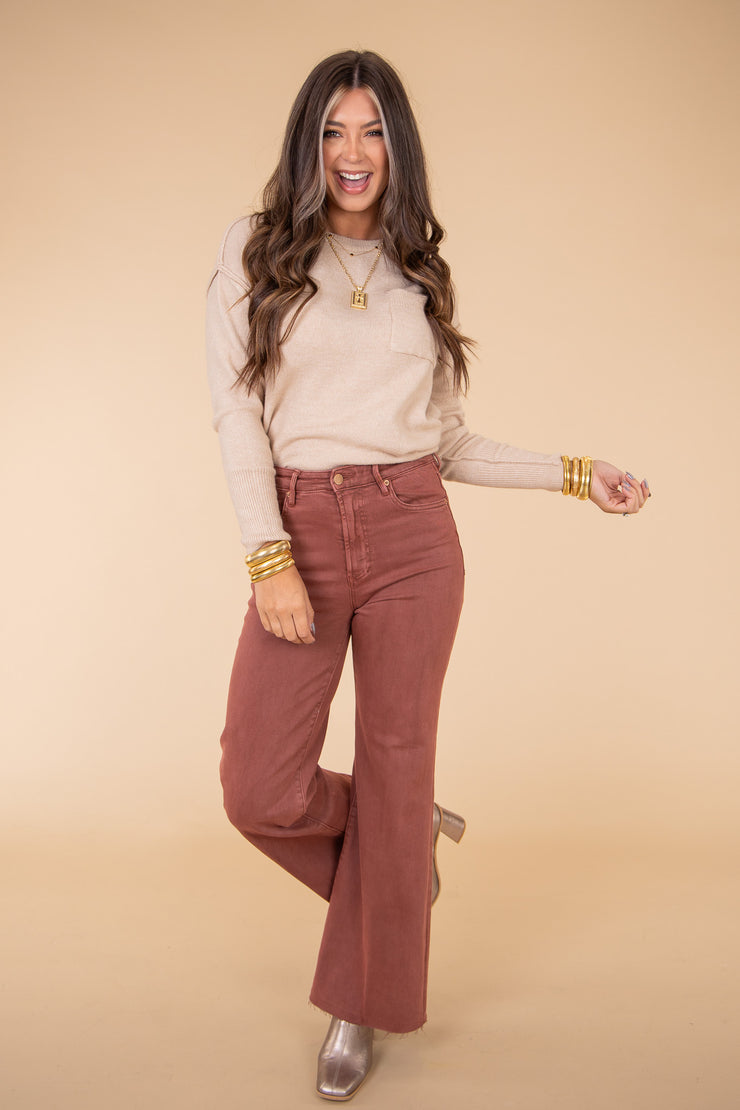 Our trendy jeans for women are designed to flatter your figure while also giving you endless styling options. A pair of flare jeans look just as good with sandals as they do with heels. For a relaxed look, wear wide-leg jeans with a fitted tee and your favorite pair of sneakers. Our fitted ankle pants look sleek and sophisticated, and a dark wash can even be incorporated into a business casual look. Enhance your wardrobe today with stylish women's jeans from The Willow Tree Boutique.