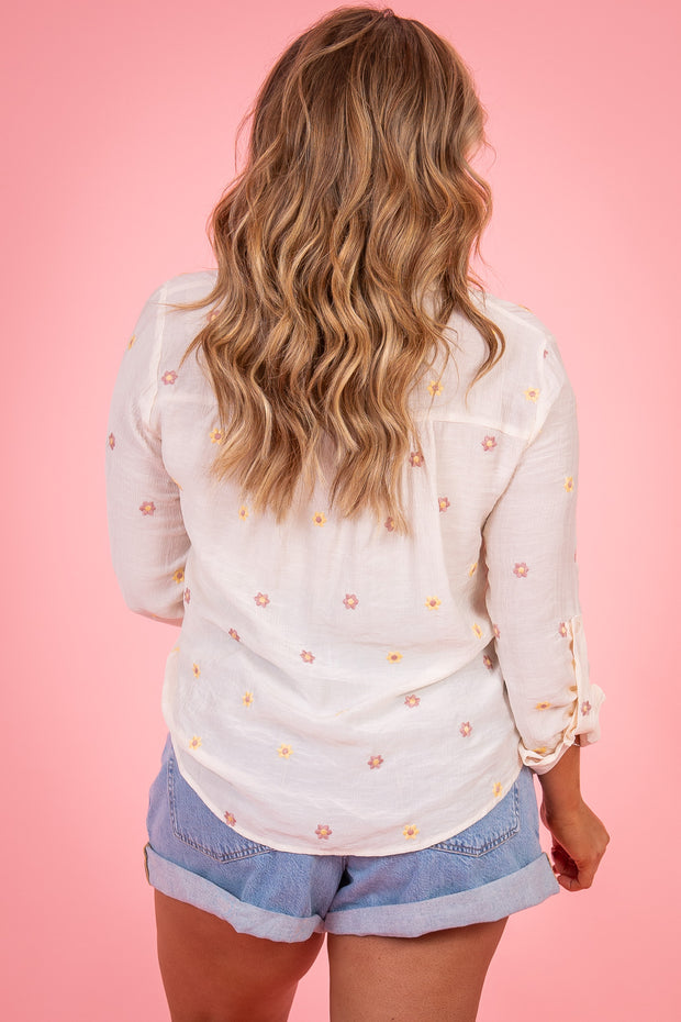 This expertly-crafted Know The Truth Top features a classic top collar and long sleeves for a timeless look. Made of high-quality linen material, it offers superior comfort and breathability. The delicate embroidered floral detailing throughout adds a touch of elegance to this versatile top. Enhance your wardrobe with this must-have piece.