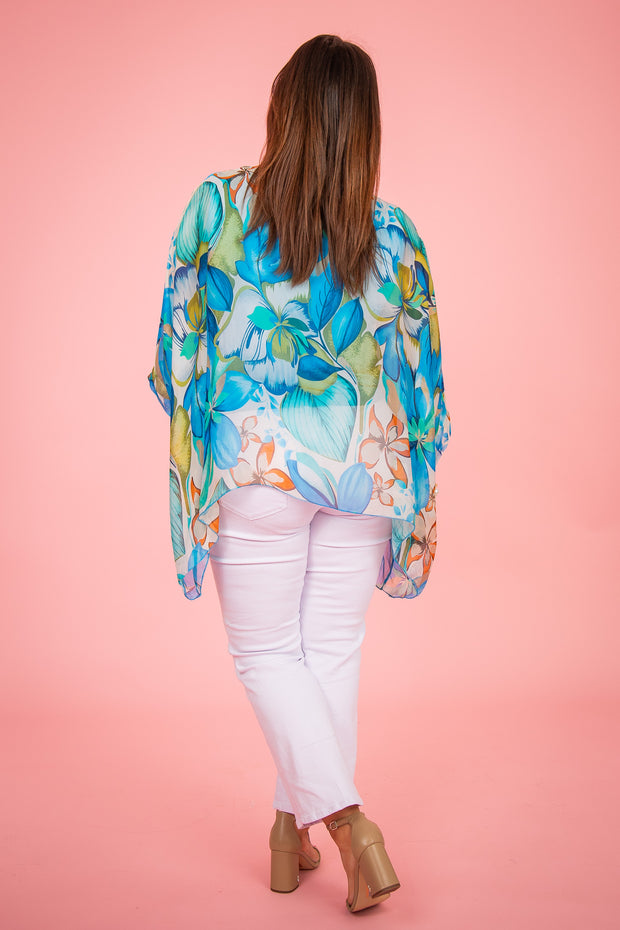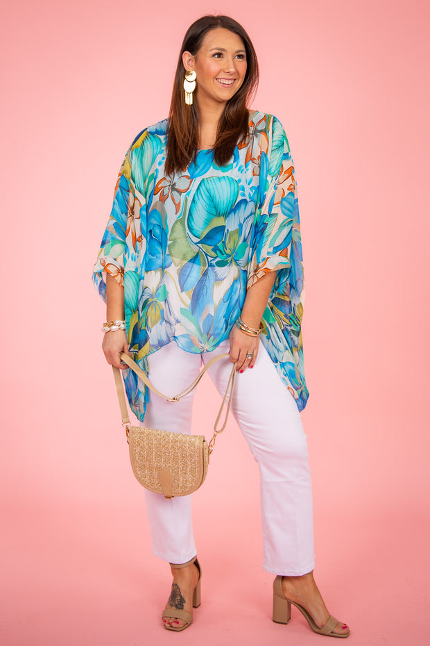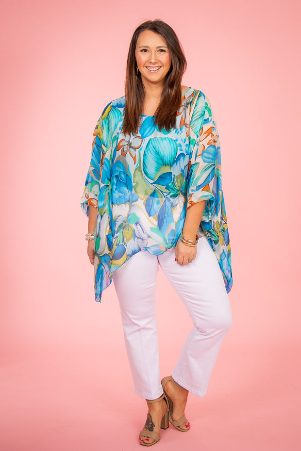This Piece Of Paradise Top in Turquoise is a versatile addition to any wardrobe. Featuring a rounded neckline and short sleeves, it offers a comfortable fit for all body types. With an inner lining and beautiful floral print, this top is perfect for any occasion.
