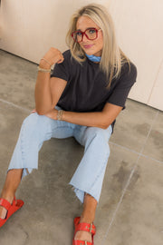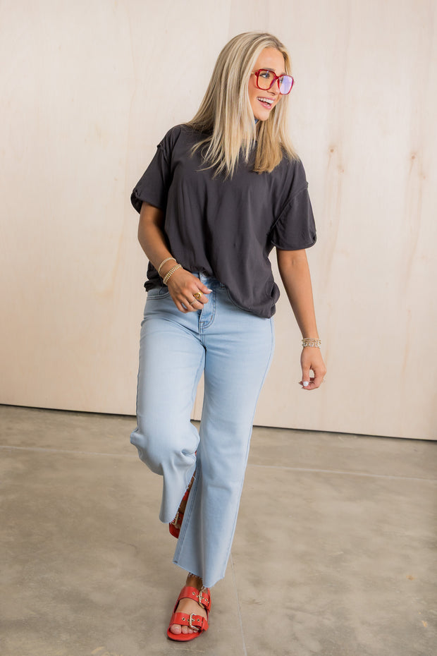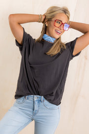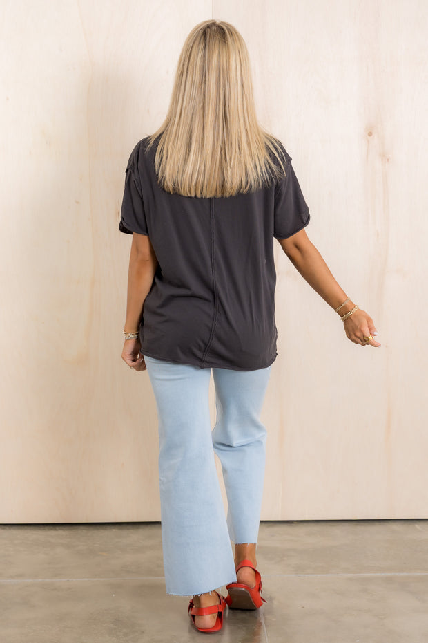 This Black Short Sleeve Tee features a rounded neckline, short sleeves, and waist length design. Crafted for comfort and style, this tee is a versatile addition to any wardrobe.