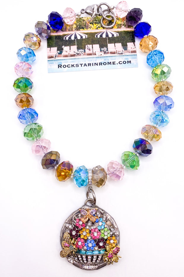 French Botanical Society Brooch Chandelier Crystal Necklace | Rockstar In Rome