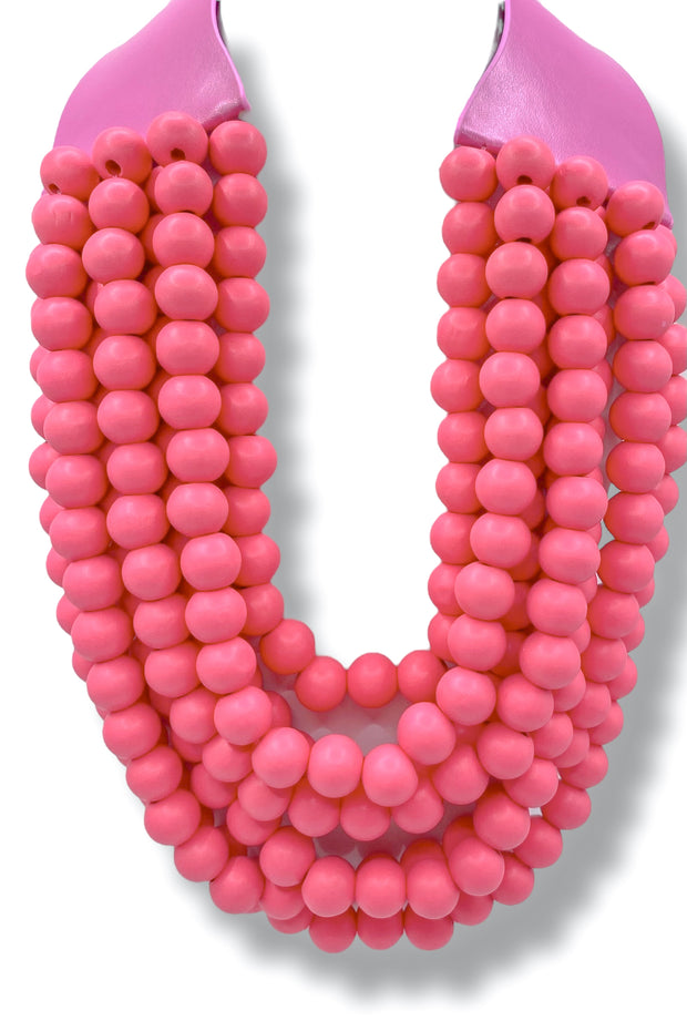 This layered necklace features wooden beads that will add a touch of sophistication to any outfit. Make a statement with this unique and elegant piece, perfect for any occasion.