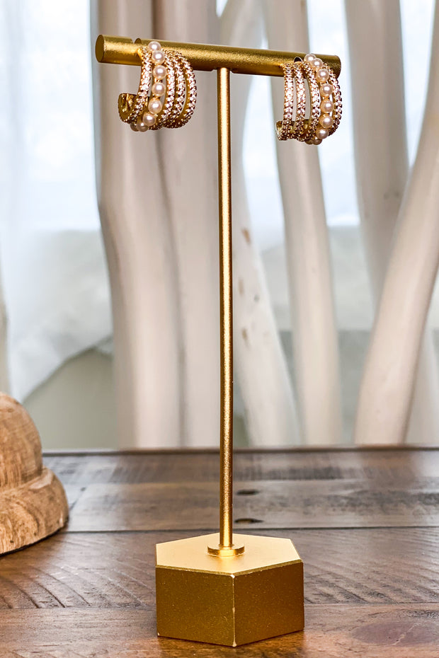 Discover elegance with Gaia Pearly Earring by Treasure Jewels. This classy dainty hoop features stunning crystal and pearl detailing, making it the perfect accessory for any formal occasion. Let your style shine with these sophisticated earrings.