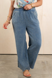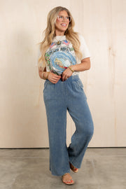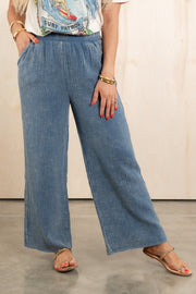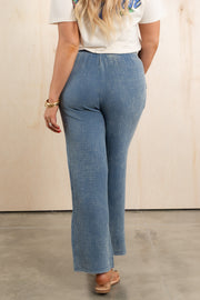 With an elastic pull-on waistband and convenient side pockets, these pants are perfect for any occasion. Made from gauze material and featuring acid washing, these pants are both trendy and versatile.