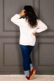Celebrate the season in comfort with this classic sweatshirt featuring a rounded neckline and long sleeves. The waist-length cut offers a flattering fit, while custom graphic detailing adds meaningful style to your holiday wardrobe.