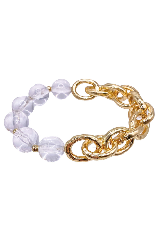 Transform any outfit with our Coming Your Way Bracelet. Adorned with beautiful clear beads and a delicate, gold chain link, this bracelet adds a touch of elegance to any ensemble. Elevate your style and make a statement with this must-have accessory.