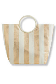 Crafted from sustainable paper straw, the bold stripes add a pop of color to any outfit. Perfect for a day at the beach or a weekend getaway, this tote combines style and functionality in one luxurious piece.