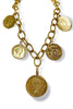 This Camera Ready Necklace by Yochi features a bold chain link design with 5 intricately detailed coin pendants. This necklace is the perfect statement piece. Layering this necklace up or style by itself.