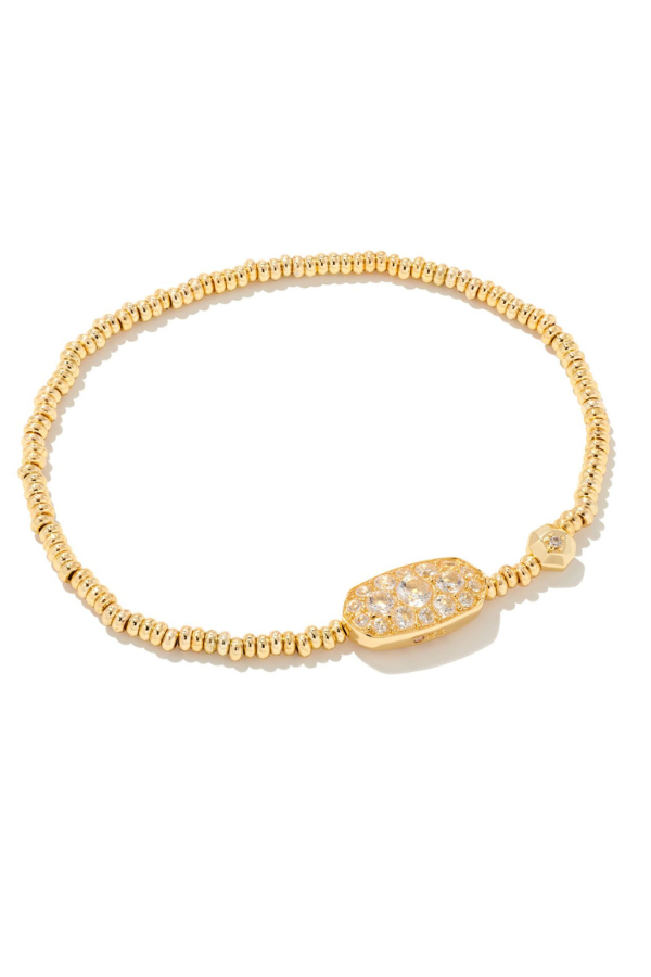 Glam up your stack with the Grayson Gold Crystal Stretch Bracelet in White Crystal. Designed to fit any wrist, this luxe iteration of everyone’s favorite bracelet features bright metal beads and crystal detail.