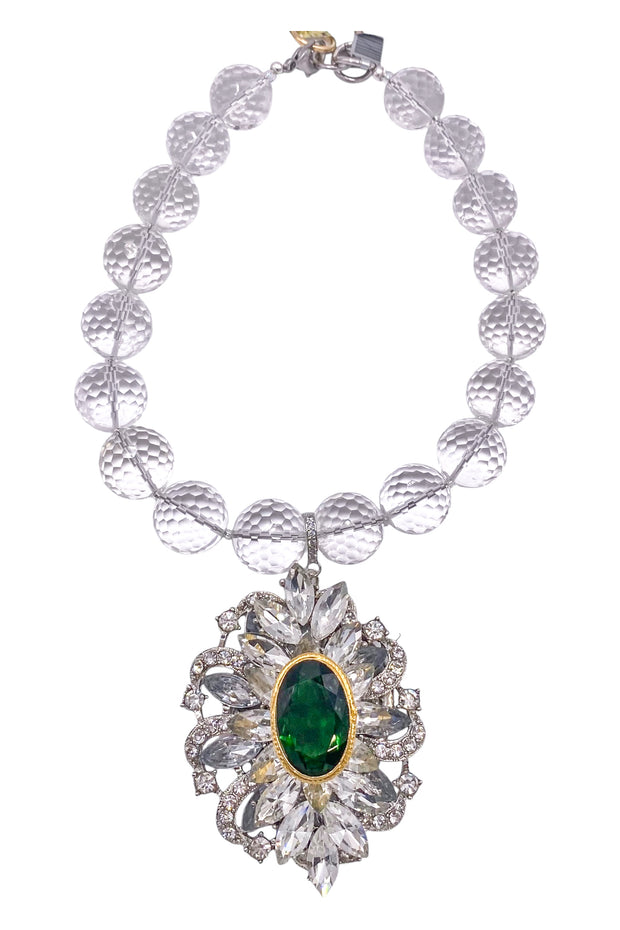 - Huge Faceted Green Tourmaline + Crystal 60s Brooch
