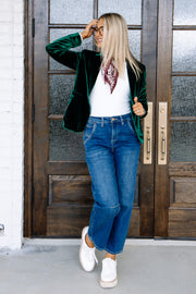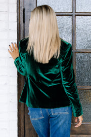 This blazer features a top collar, long sleeves, and a waist-length cut for a polished look. The button-down front adds classic style, while the soft velvet material offers a comfortable,
